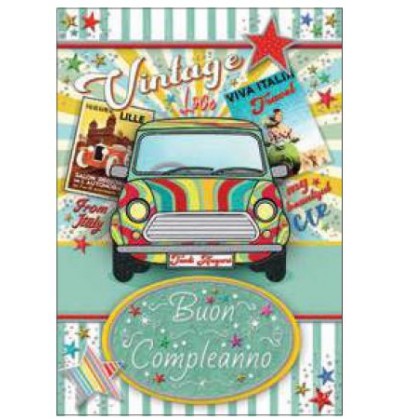 Biglietto compleanno vintage stampa offset argento multicolor a caldo rilievo in serigrafico