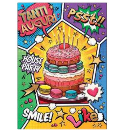 Biglietto compleanno comics stampa offset oro a caldo rilievo uv serigrafico