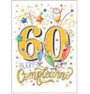 Biglietto buon compleanno 60 anni stampa offset oro glitter multicolor a caldo rilievo uv serigrafico