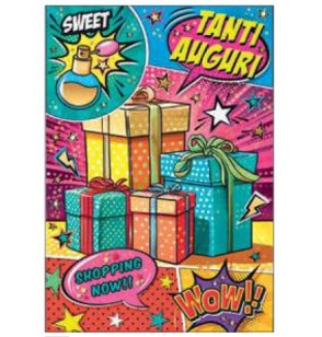 Biglietto compleanno comics stampa offset oro a caldo rilievo uv serigrafico