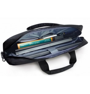Borsa in 3 scomparti in tessuto tecnico antigraffio antipioggia doppio scomparto frontale con zip tasche interne e divisorio porta pc tablet imbottito fascia posteriore per trolley e tracolla regolabile removibile