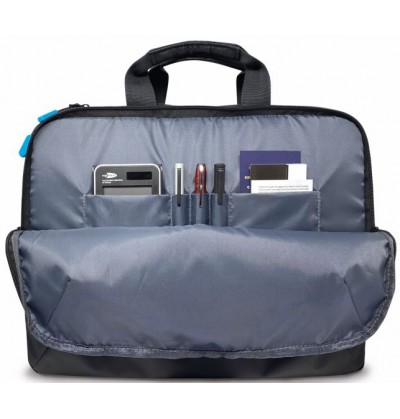 Borsa in 2 scomparti in tessuto tecnico antigraffio antipioggia tasche interne e scomparto porta pc tablet imbottito fascia posteriore per trolley e tracolla regolabile removibile dimensioni 41x31x10,5 cm