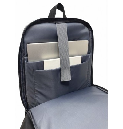 Zano 3 scomparti in tessuto tecnico antigraffio e antipioggia scomparto con divisorio imbottito per pc tablet tasche laterali tasche interne portaoggetti scomparto per scarpe dorso e spallacci imbottiti traspiranti fascia posteriore per trolley zip antipioggia Dimensioni 31x46x18,5 cm