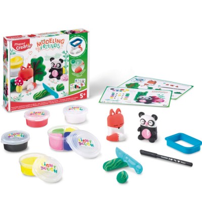 Modeling friends creative set cute una gamma di piccoli personaggi facili da realizzare con uno stile unico forma riconoscibile contiene 4 vasetti di pasta che essicca all aria da 18 g 1 vasetto di pasta che essicca all aria a 4 colori da 31 g 1 cutter 1 coltellino di plastica 1 pennarello nero 1 manuale Anni 5