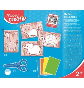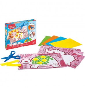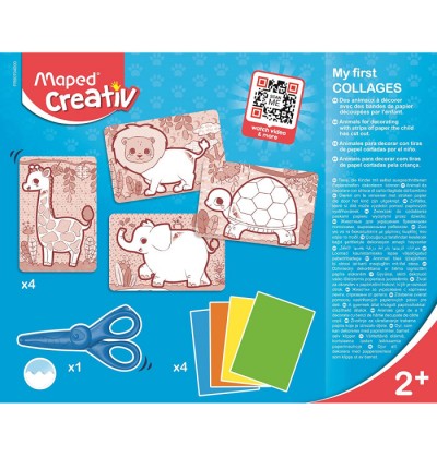 Animali da decorare con striscie di carta ritagliate dal bambino contiene 4 card adesive illustrate 4 fogli di carta colorata da ritagliare 1 paio di forbici per la prima infanzia Anni 2