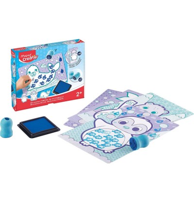 Animali accattivanti i cui corpi possono essere decorati utilizzando cuscinetti inchiostrati contiene 4 card illustrate 2 timbri ergonomici con diversi pattern 1 cuscinetto inchiostrato blu Anni 2