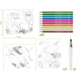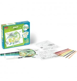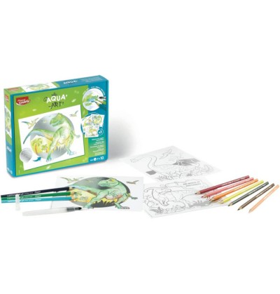 Aqua art danza soggetti realizzati da colorare e dipingere soipra a pennello per un effetto acquarello unico scopri come creare effetti sfumati e dissolvenze uniche assolutamente ideale per bambini che amano il magico mondo dei colori i tuoi piccoli artisti adoreranno questo mondo deli dinosauri contiene 3 card illustrate metallizzate con effetto 10 pastelli aqua 1 pennello con serbatoio per l acqua 1 manuale