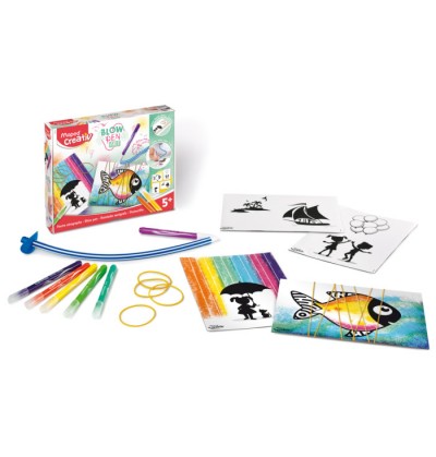 Blowpen art aerografo string art usa gli elastici per incredibili creazioni con effetto aerografo contiene 1 accessorio per aerografo 5 pennarelli jungle 4 cartoncini stampati 10 elastici Anni 5