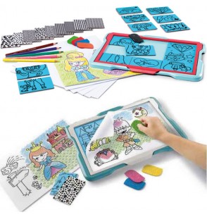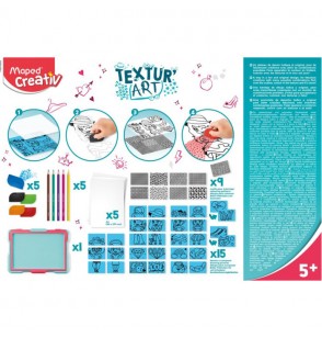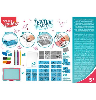 Textur art fashion una lavagna per disegnare dai colori strabilianti per disegni alta moda con diverse combinazioni possibili contiene 1 lavagna per disegnare 5 gessetti per colorare 5 pastelli 15 modelli doppia faccia 9 modelli di textura da colorare 5 fogli formato A4 Anni 5
