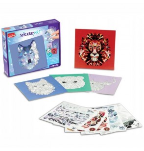 Sticker art crea ritratti di animali con origami usando una tecnica di adesivi numerati contiene 4 card in cartoncino 5 supporti adesivi 1 manuale 1 supporto in cartone che diventa cavalletto Anni 6