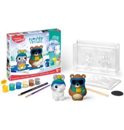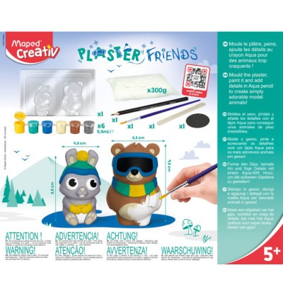 Plaster friends gesso orso e coniglio adorabili coppie di animali in gesso modella il gesso dipingi aggiungi dettagli con il pastello aqua e mostra le tue opere d arte contiene 1 stampo riutilizzabile 2 figure 1 sacchetto di gesso vasetti di vernice 6 x 5,4 ml 1 pennelo 1 pastello nero maped aqua 1 bastoncino in legno 1 carta vetrata 1 manuale Anni 5