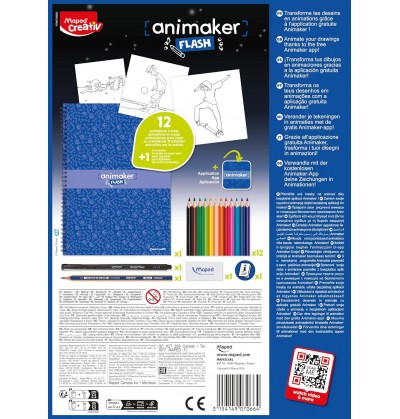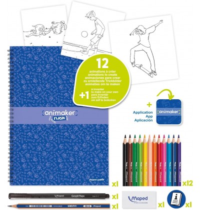 Maped Creativ Animaker Flash Action - Set completo di quaderno da colorare matite e forniture per istruzioni e accesso app animaker - dai 6 anni