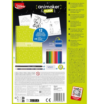 MAPED Creativ Animaker Flash Pop - Set completo di quaderno da colorare matite e forniture per istruzioni e accesso app Animaker - dai 6 anni