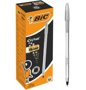 BIC Cristal Shine Penne a Sfera Punta Media, (1.00 mm), Inchiostro Nero, Confezione da 20 Penne, Con Fusto, Color Argento