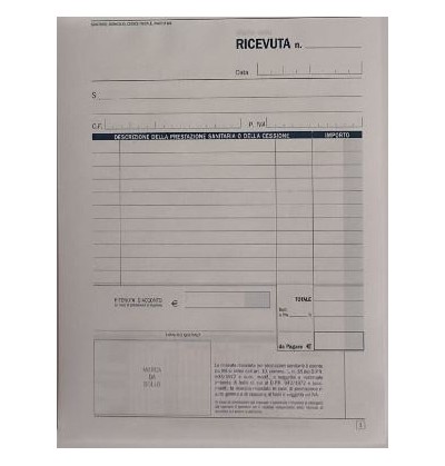Ricevuta sanitaria 50 x 2 in carta chimica formato 15 X 22