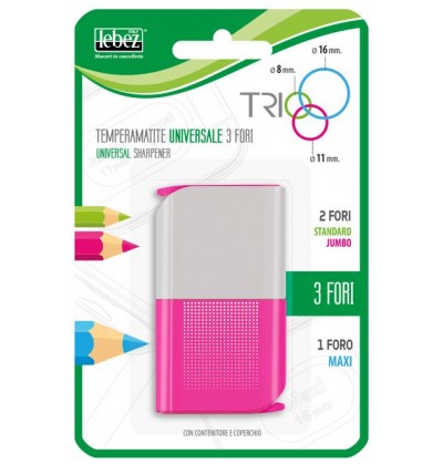 Temperamatite in plastica universale 3 fori con contenitore e coperchio 3 colori