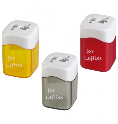 Temperamatite a due fori con contenitore speciale per mancini perche si tempera ruotando la matita o i pastelli in senso antiorario temperino integrato di metallo